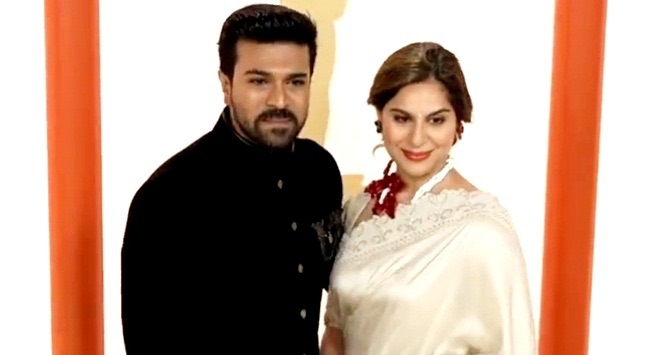 Hyderabad, March 13 (IANS) Tollywood star Ram Charan and his wife Upasana, who attended the Oscar presentations and witnessed the momentous occasion, caught the eye, dressed to the hilt in Indian sartorial elegance.